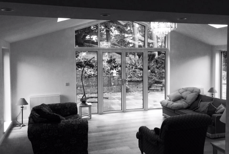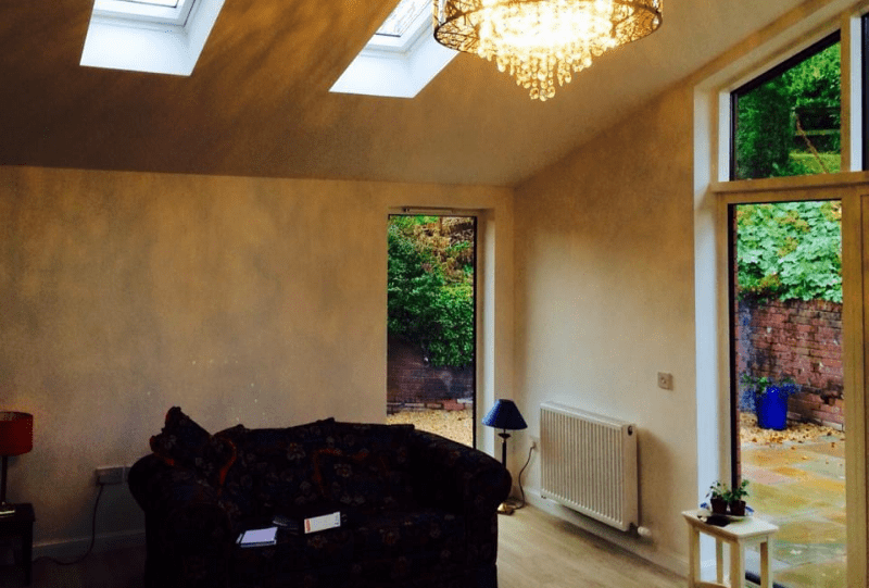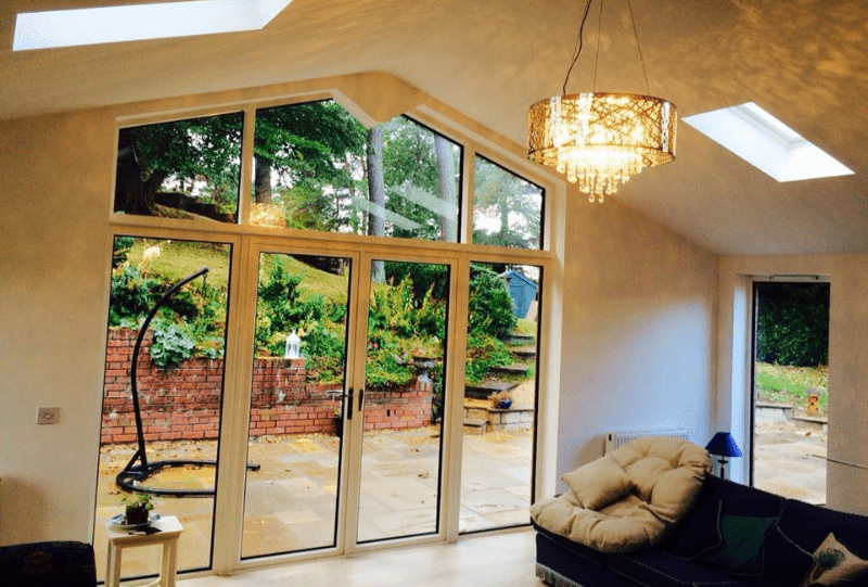 In this design we wanted to create a strong visual connection into the garden from a new family / garden room. We achieved this with a vaulted ceiling and a tall section of glazing to showcase the views into the client’s sloped garden. We also introduced side glazing panels to capture specific views around the side garden.
